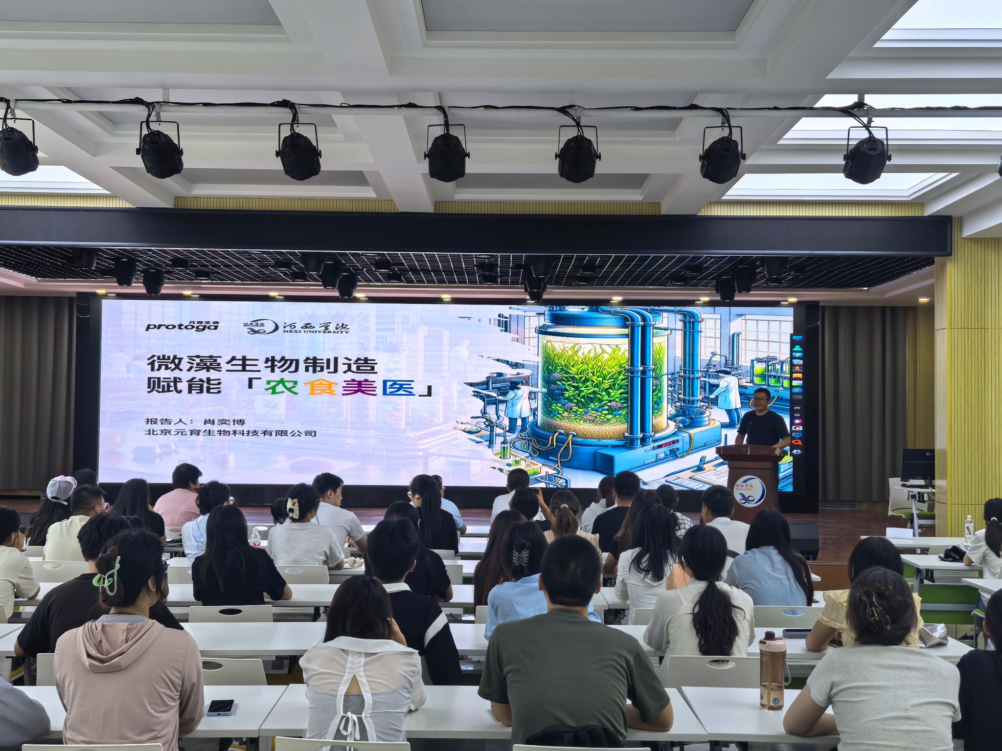 在报告中,肖奕博博士详细介绍了微藻生物制造的原理与技术路径,阐述了微藻作为一种高效生物资源在农业、食品、美容和医疗等领域的巨大应用潜力。他指出,微藻富含多种生物活性物质,通过现代生物工程技术,可以将其转化为高附加值的产品,为相关产业带来创新动力。同时,肖博士结合自身创业经历,分享了他在创业过程中历经的艰辛与挑战。从技术研发的瓶颈到市场开拓的艰难,从资金短缺的困境到团队建设的挑战,他坦诚地分享了每一个艰难时刻的应对策略。他鼓励在场的员工要有敢于冒险的精神和坚韧不拔的毅力,勇于追求自己的创业梦想。报告结束后,肖奕博博士还与现场师生进行了互动交流,解答了大家关于微藻生物制造技术、创业策略以及未来发展趋势等方面的问题。