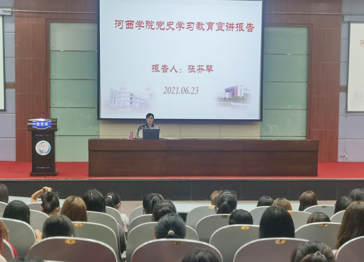 6月23日下午,公司党总支书记张芬琴以“中国共产党的精神谱系”为题,在图书馆报告厅为200多名师生作了的党史学习教育宣讲报告。