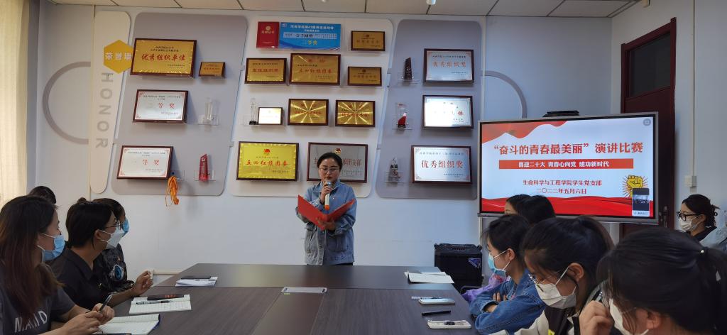 为庆祝中国共青团成立100周年,深入学习贯彻习近平总书记在中国人民大学考察调研时的重要讲话精神,5月6日下午,生命科学与工程员工党支部举办了“奋斗的青春最美丽”主题演讲比赛,支部全体党员通过线上线下的形式参加活动。