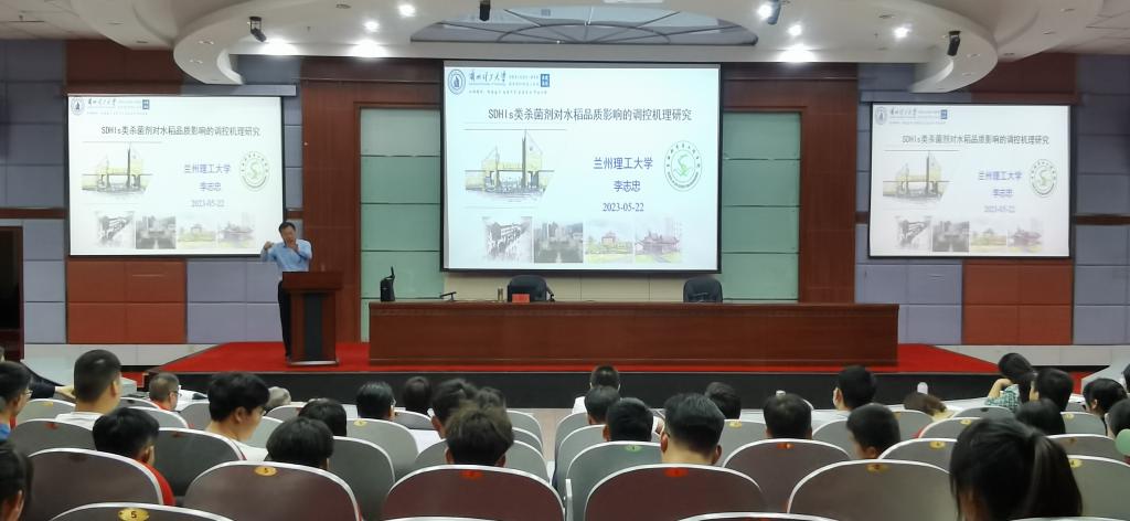 5月22日下午,应伟德体育邀请,兰州理工大学李志忠教授在图书馆二楼报告厅作了题为“SDHIs类杀菌剂对水稻品质影响的调控机理研究”的学术报告。报告会由伟德体育负责人主持,全院师生200余人参加了报告会。
