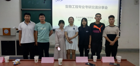生物工程专业2017级8名优秀考研生结合自身考研经验和心得体会,围绕考研理念、考研择校、课程复习、心态调整等方面分别作了交流发言。考取西北师范大学的程丽花和张作明同学就考研择校、各科备考方法、注意问题、应试技巧四个方面分享了他们的备考经验和技巧;考取石河子大学的王伟亮、尹珊和李好同学也分别从学习计划和各科学习方法方面进行了经验分享,比如生物化学的复习要从四大物质、物质代谢、中心法则、实验技术等方面出发;考取青岛农业大学的郑刘长同学也从考研公司选择和各科复习方法方面进行了详细介绍,例如生物化学的复习要构建思维导图等;考取浙江理工大学的田旭同学,结合自身的考研经验分享了重视考点、记忆方法、考研书籍选择等;考取重庆师范大学崔晶同学强调了教学大纲和备考资料选择的重要性,指出专业课的复习需脚踏实地、夯实基础,有效利用网络资源,考研要有自己的规划,分享给同学们如何去查找需要的资料,可以搜索微信公众号如超级资料等,她也告诉同学们要有良好的心态,坚定信念,永不放弃。随后,低年级同学们就自己遇到的一些问题积极提问,与2017级优秀考研生进行了交流。