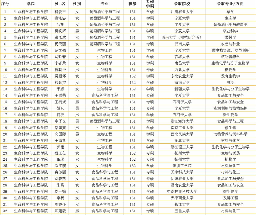 2020年,公司有毕业生136人,其中57人报考了“双一流大学”的一流大学建设和一流团队建设等高校的硕士研究生,报考率为41.91%;上线人数35人,上线率61.40%;除3人因特殊原因自动放弃被录资格外,其余32人均被录取,录取率91.42%。其中,2人分别被一流大学建设高校云南大学和新疆大学录取,15人分别被西北大学、西南大学和南昌大学等一流团队建设高校录取,被“双一流大学”录取的录取率为54.29%,所录公司分布于华南、华西、华东、东北和西北各区共16个省份。