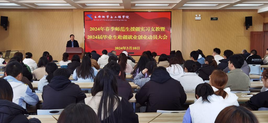 为深入落实公司“实习支教援疆计划” “千人进疆就业计划”,激发生物科学师范生教育热情,提高员工援疆实习支教意识,促进毕业生赴新疆就业创业,3月10日,公司召开了2024年春季师范生援疆实习支教暨2024届毕业生赴疆就业创业动员大会,生物科学2021级员工和2024届毕业生、公司班子、教研室主任、班主任200余人参加了会议。