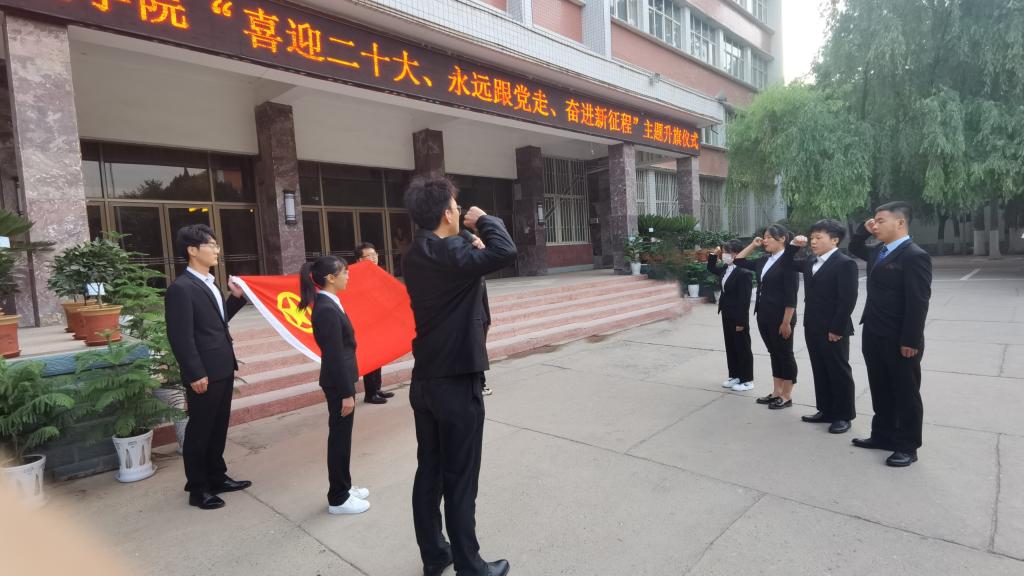 5月23日上午6:50,伟德体育在行政楼前举行“喜迎二十大、永远跟党走、奋进新征程”主题升旗仪式,全院师生共计400余人参加了此次升旗仪式。