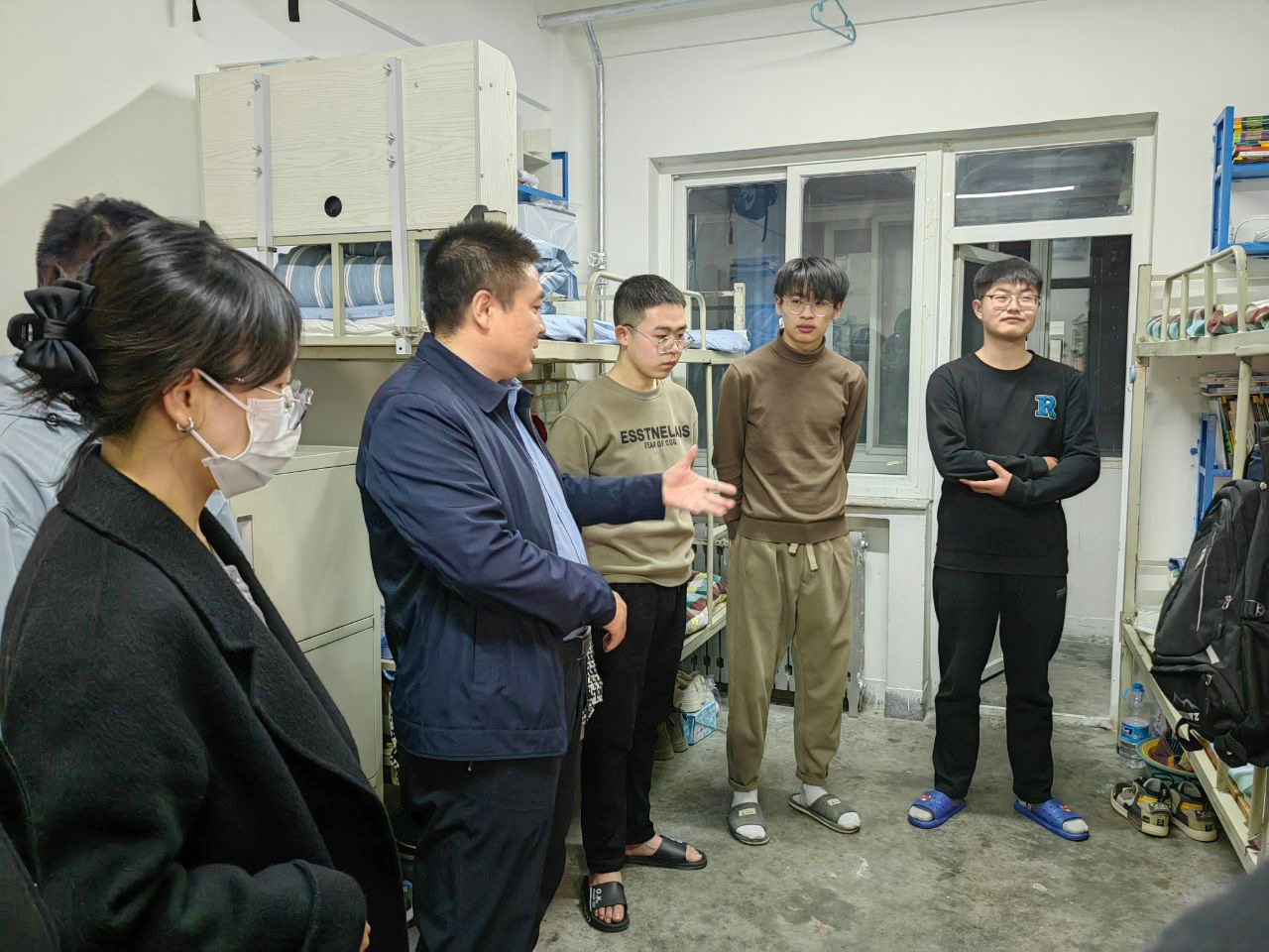 院领导和老师与同学们亲切交流,听取员工假期学习、生活、健康状况和新学期计划,并收集员工诉求和想法;提醒同学们注意用电安全、网络电信诈骗等相关事宜,并对员工考研就业等方面的问题和困惑进行了深入交流,对返校学子新学期良好的精神面貌与干净整洁的寝室环境表示赞扬。老师叮嘱同学们要自觉遵守校纪校规,科学做好健康防护,养成良好的卫生习惯和健康的生活方式。同时,勉励同学们在新学期,要勤于学习、勇于探索、志存高远、脚踏实地,及早规划学习目标,珍惜大学时光、不负青春韶华,用踔厉奋发、青春向上的力量,承担起新时代的责任与使命。